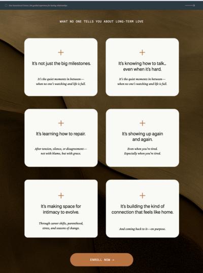 Uncover what’s already working. Celebrate your connection. Learn how shared appreciation and vulnerability create a foundation that lasts.
